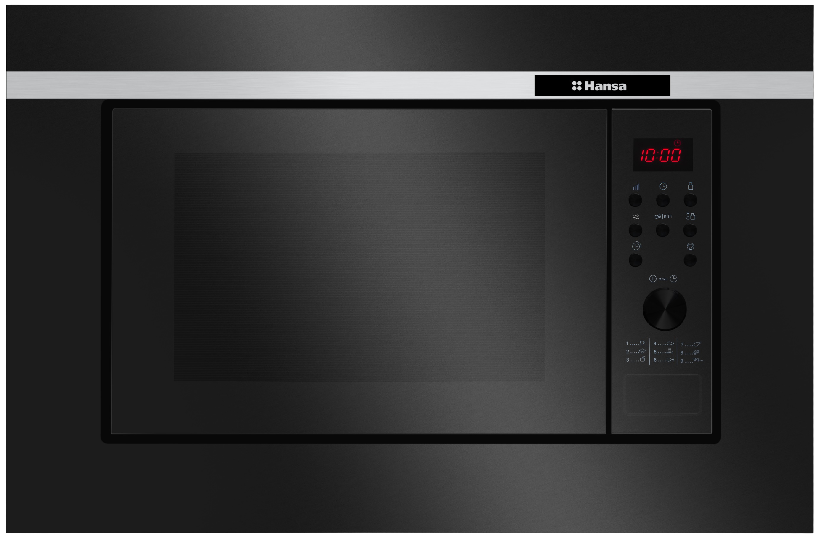 Hansa Мікрохвильова піч вбудовувана, 20л, електр.управл., 800Вт, гриль, дисплей, відкр.кнопкою, чорний
