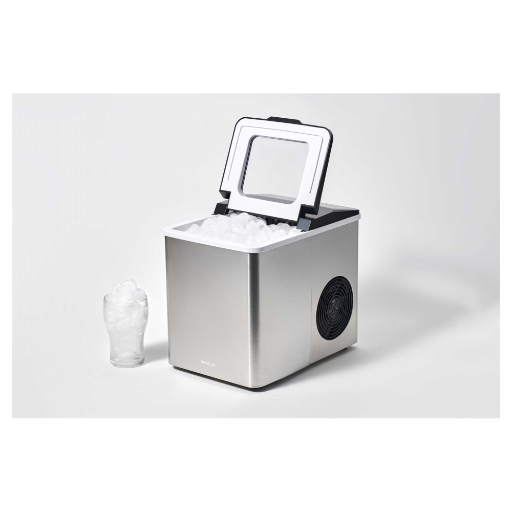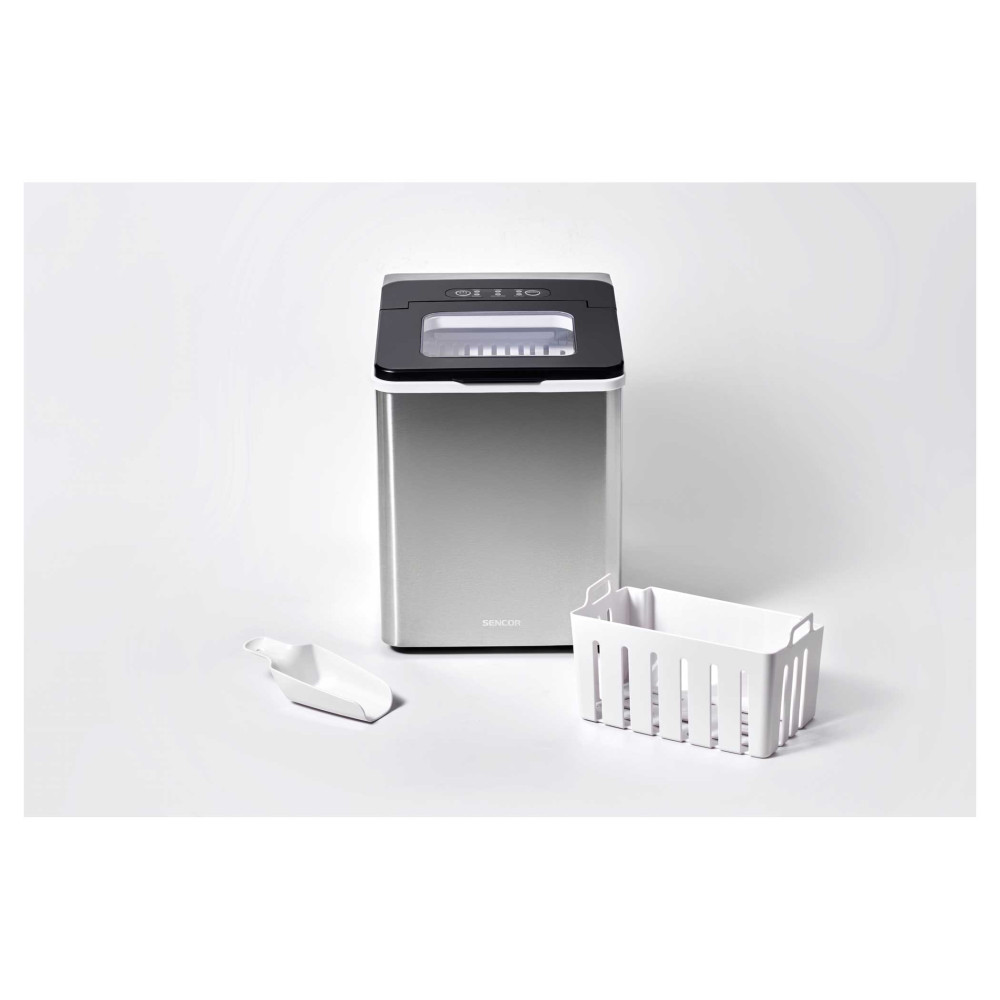 Компактний льодогенератор Sencor із корпусом з нержавіючої сталі;